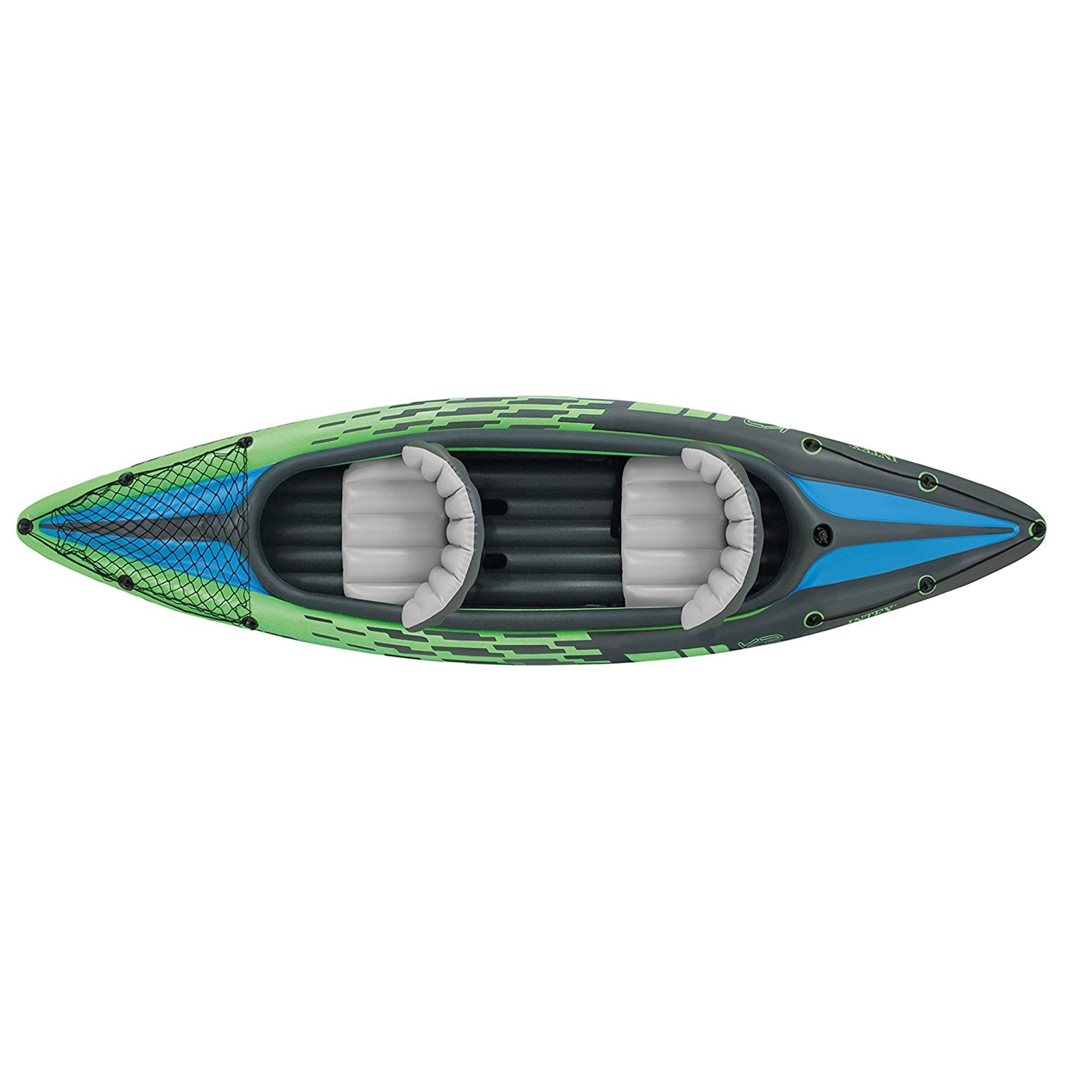 Challenger K2 Kayak 2 person kayak is made of rugged SUPER-TOUGH vinyl made stronger for durability. High visibility graphics allow others to see you easily. The cockpit is designed for comfort and space and has an inflatable seat and backrest. US Coat Guard ID.